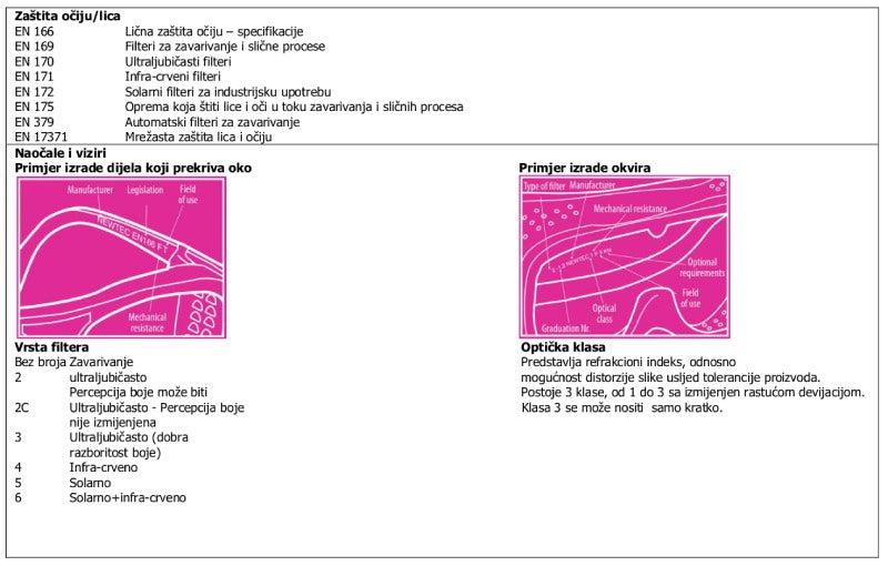 Opis: okvir od ABS-a, bočno prozračne, zatamnjenost 5, podesiva traka oko glave okular Ø 50
